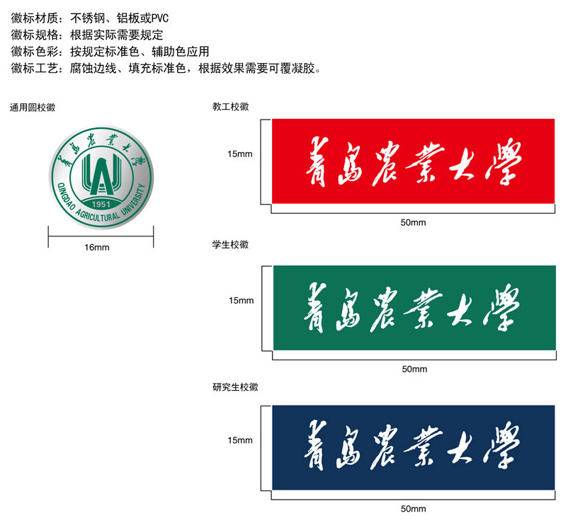 (摘自《关于公布使用学校校名字体及校标的通知》[青农大校办字〔2007〕11号])