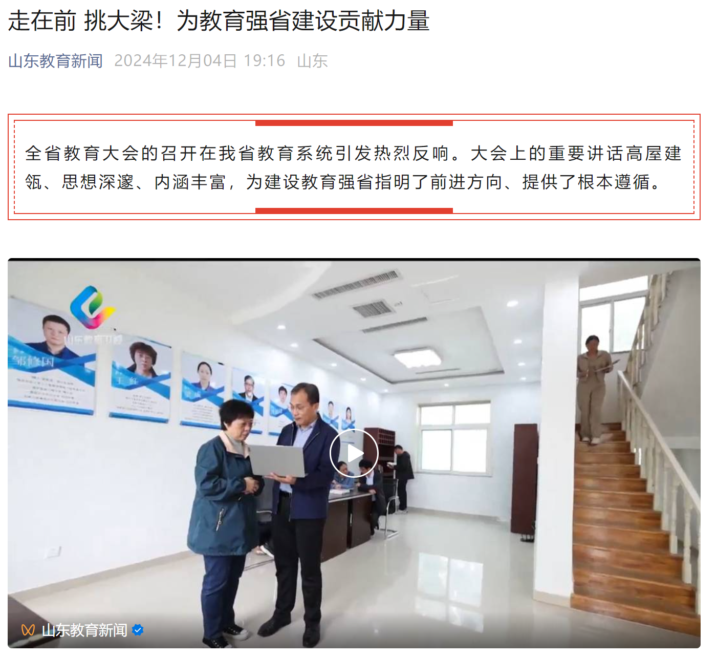 会上提到,要锚定教育强省建设目标,深入实施科教强鲁人才兴鲁战略、创新驱动发展战略,奋力打造具有全国引领力、全球影响力的教育高地,勇当教育强国建设排头兵。对此,大家纷纷表示,将认真学习领会、深入贯彻落实大会精神,牢记使命、实干奋进。