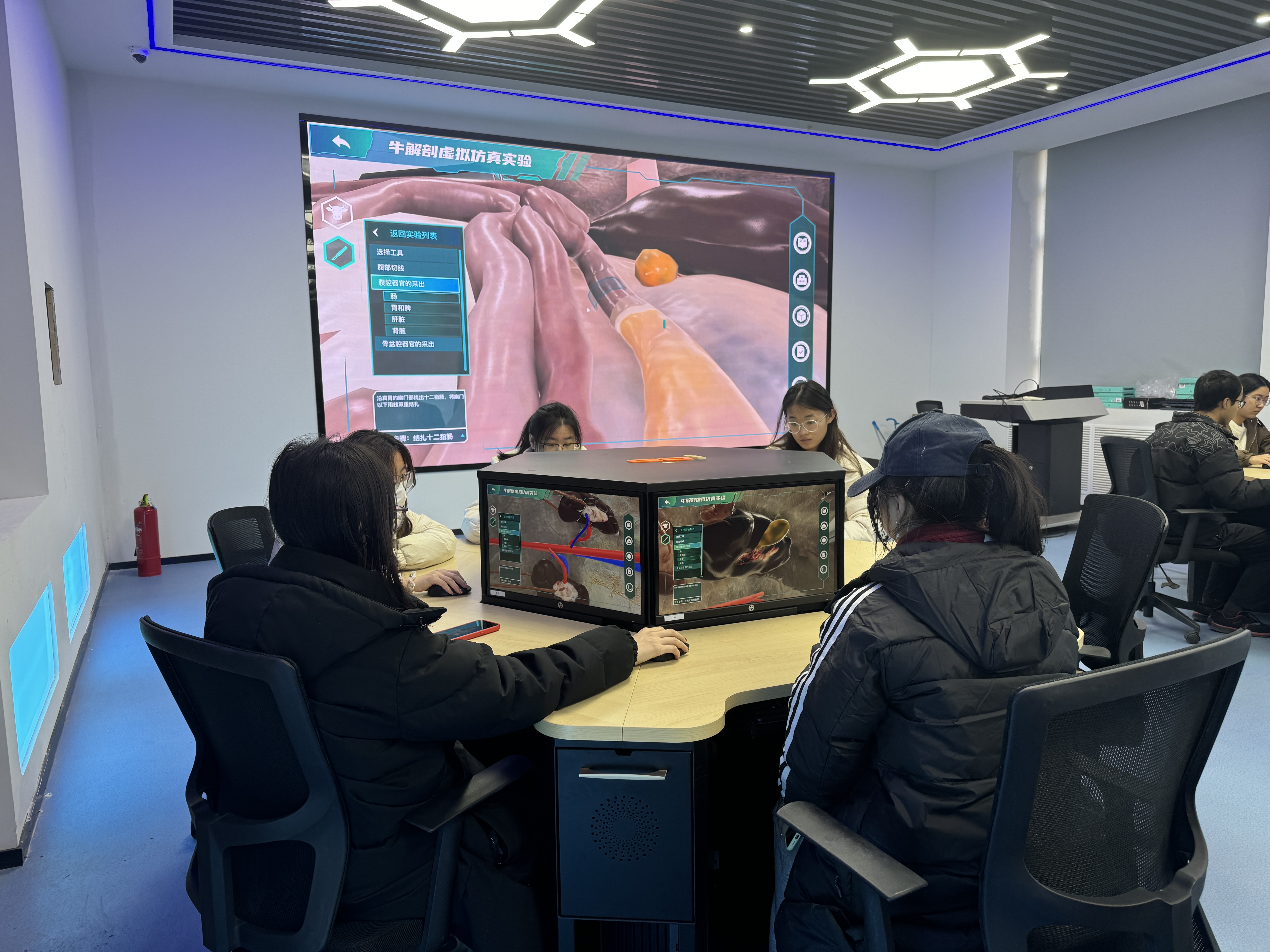 农业智慧化实践教学——AI赋能“训”,即配备先进物联网与AI算法的实验实训平台、设计数字化实验与实习课程,利用VR和AR技术进行模拟教学。搭建虚拟“智慧农场”“智慧牧场”等综合应用场景,将生物系统感测、农业智能装备、智能灌溉与排水、病虫害预测等课程的关键应用技术在综合场景中进行整合与展示,弥补现实条件下实验场景的不足。对接成熟的农业人工智能应用案例,如农田杂草识别、牧场羊脸识别等,让学生在虚拟环境中完成农业种植、养殖项目的规划和执行。通过实时数据收集和分析,将智慧农场中的生产数据引入课堂,大模型可以为这些数据进行智能化分析,让学生理解和掌握数据驱动的农业管理和决策过程。